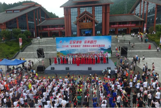 8月8日上午由区文化旅游委、区直机关工委、区总工会、武陵山管委会、武陵山乡政府、交旅集团联合主办的“2019年‘全民健身日’涪陵体彩公益彩虹跑活动”在武陵山大裂谷游客中心广场隆重举行。