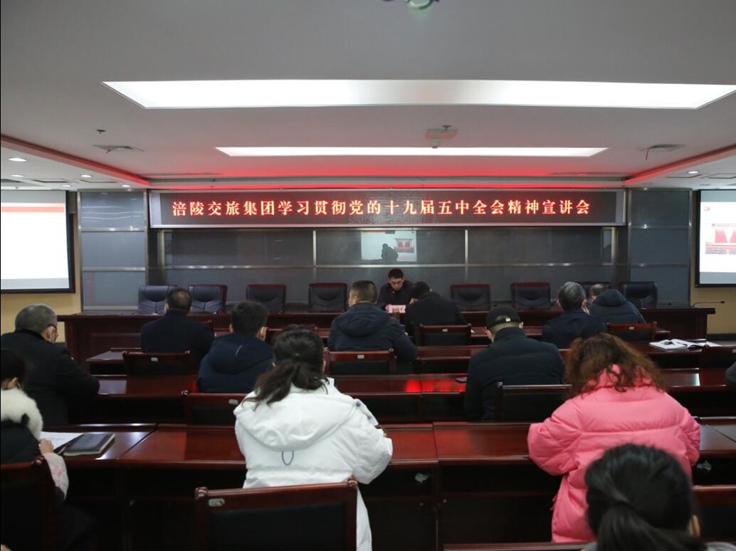 2021年1月20日,交旅集团组织召开主题为“牢记使命促改革 凝心聚力谱新篇”党的十九届五中全会精神宣讲会。集团公司领导班子、中层干部、职工代表,各子公司班子成员、党员代表参会。宣讲会由党委书记、董事长姜洪平同志主讲。