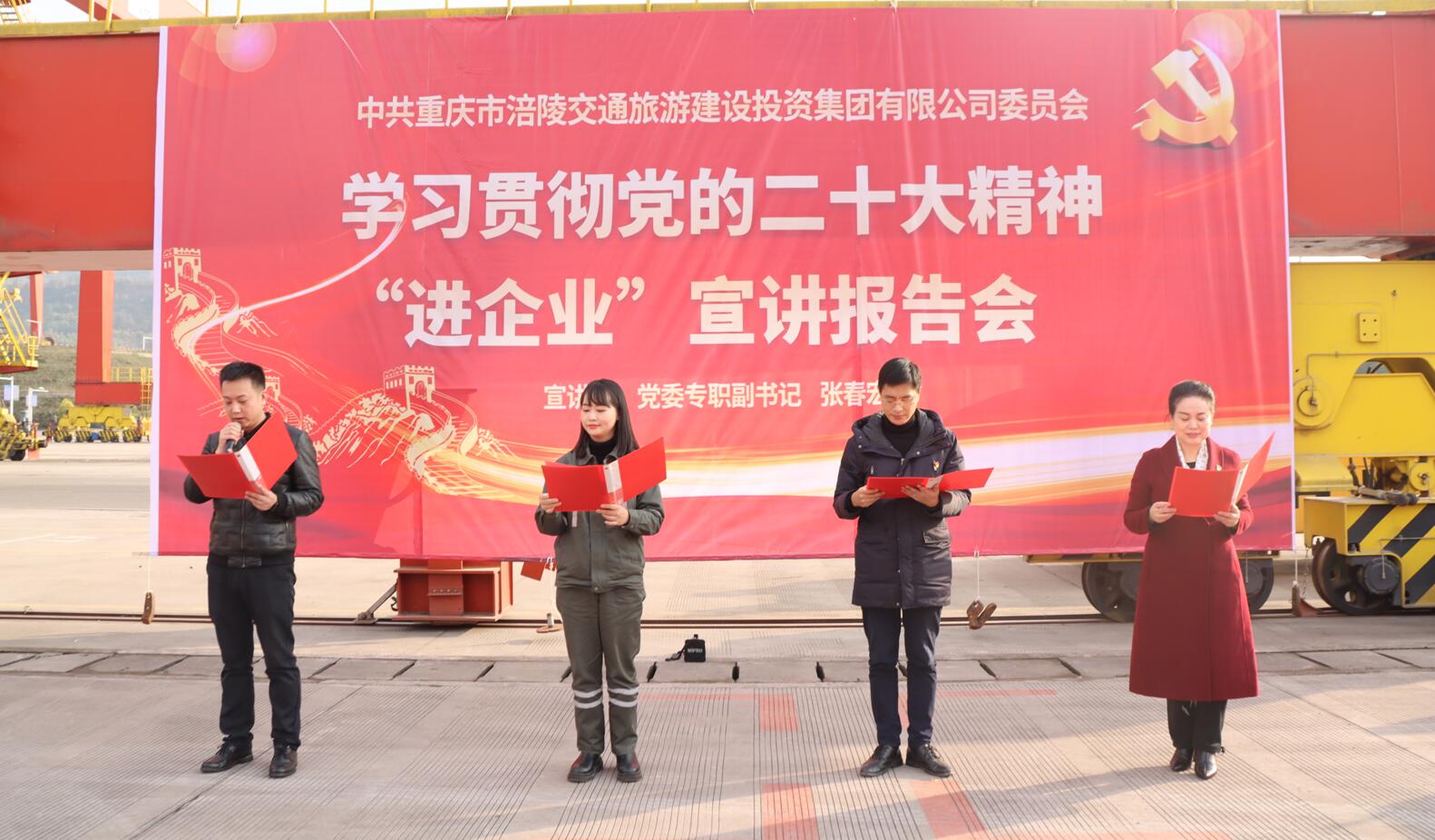 1月6日下午,涪陵交旅集团党委专职副书记张春宏同志来到龙头港作业现场开展学习贯彻党的二十大精神“进企业”宣讲。兴港公司、龙头港公司、中龙公司、海迅公司党员干部和员工代表参会。