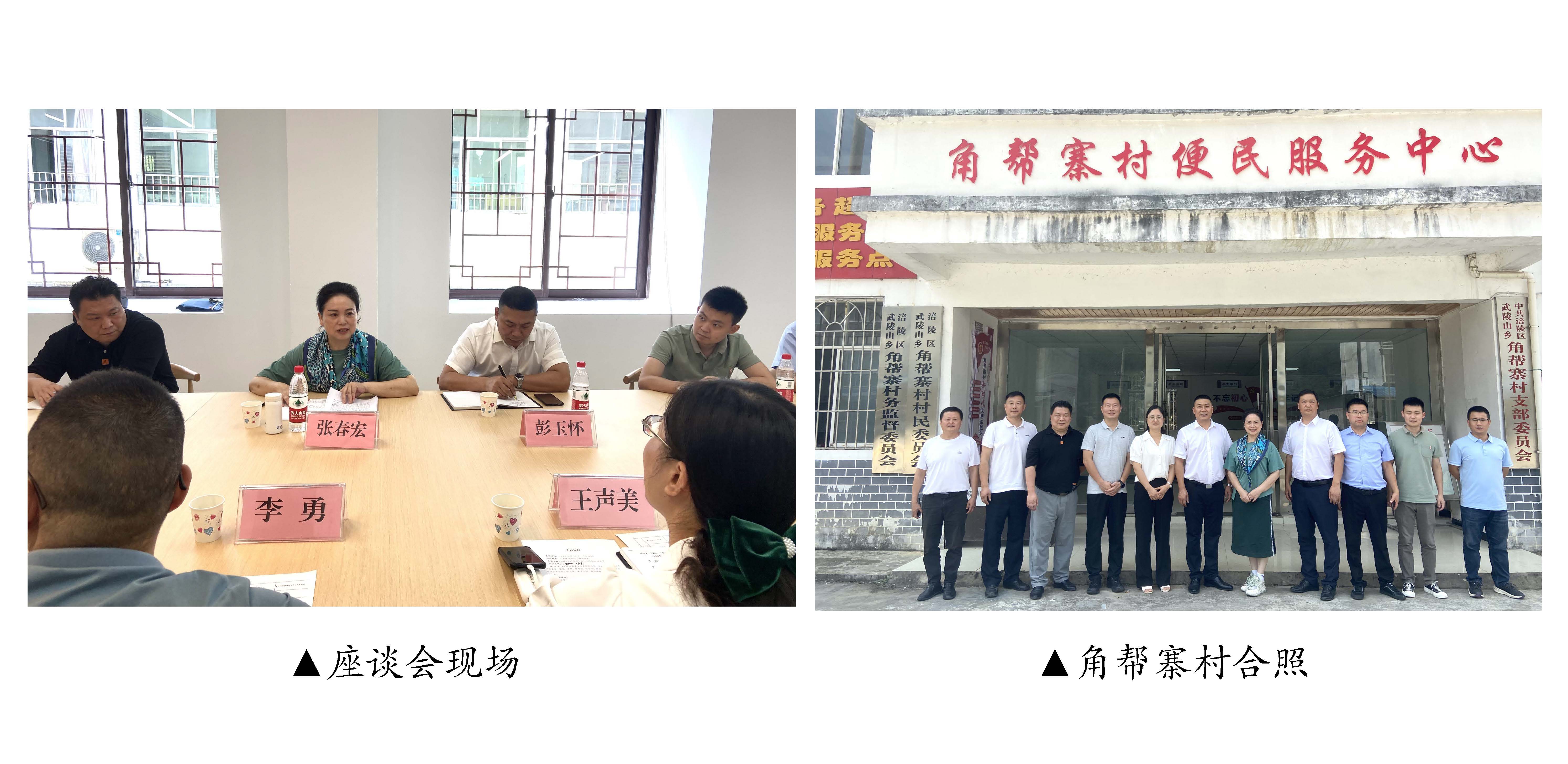 张春宏说,在今后两年帮扶工作中,将全力做好助力乡村振兴工作,一是以村企党建联建为载体,结合"双报到、双报告"工作,加快构建共建共治共享格局,共谋乡村振兴新发展;二是以产业振兴为先导,充分发挥角帮寨村特色资源和交旅集团文旅优势,在"稳、深、增"上下功夫,推动乡村全面振兴;三是建立季度联席会工作机制,确保乡村振兴帮扶有效落实。会后,张春宏一行前往角帮寨村、金子山村,查看驻村队员办公、住宿等情况。