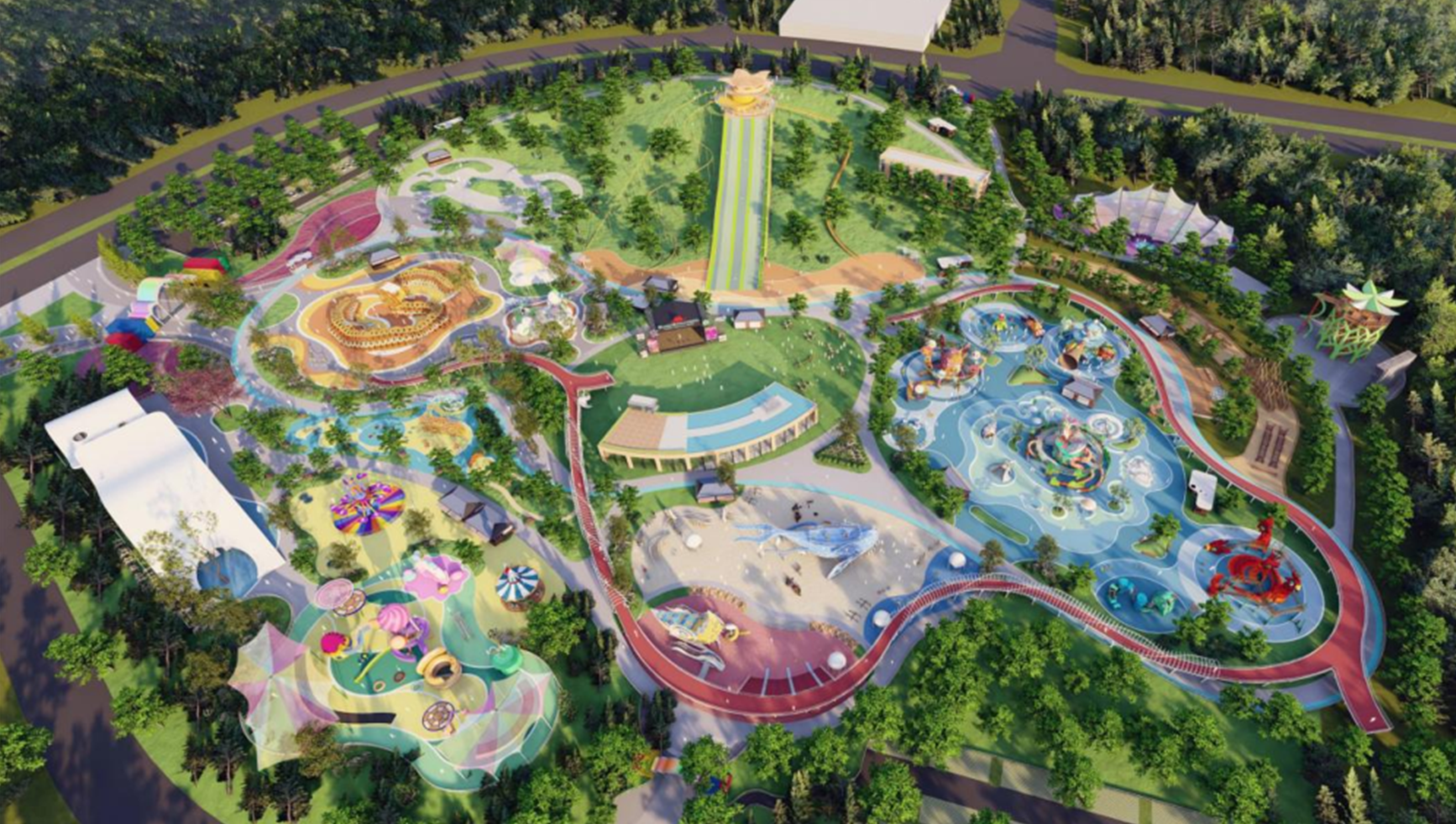 童乐家家项目位于北山坪山顶,旨在打造一个集亲子乐园、研学营地、自然教育、休闲餐饮于一体的亲子微度假旅游目的地。该乐园共分为5个主题区域,包含文明源头区、缤纷天地区、沙滩海岸区、勇者探险区和山地翱翔区。文明源头区以中华龙图腾寓意传承为依托,结合二十四节气融入多样玩法,设有飞龙在天、龙珠迷宫、亲子秋千等游玩项目;缤纷天地区将穿越时光,打造一个独属于80后、90后的乐园;沙滩海岸区开设月亮船、沙子工厂等游玩项目,将攀爬、滑、跳、荡等功能嵌入主体设备;勇者探险区开设无动力戏水、虫洞爬网等探险项目,培养孩子的综合体能和五维空间感;山地翱翔区因地制宜,设置波浪滑道和单轨滑车等。
