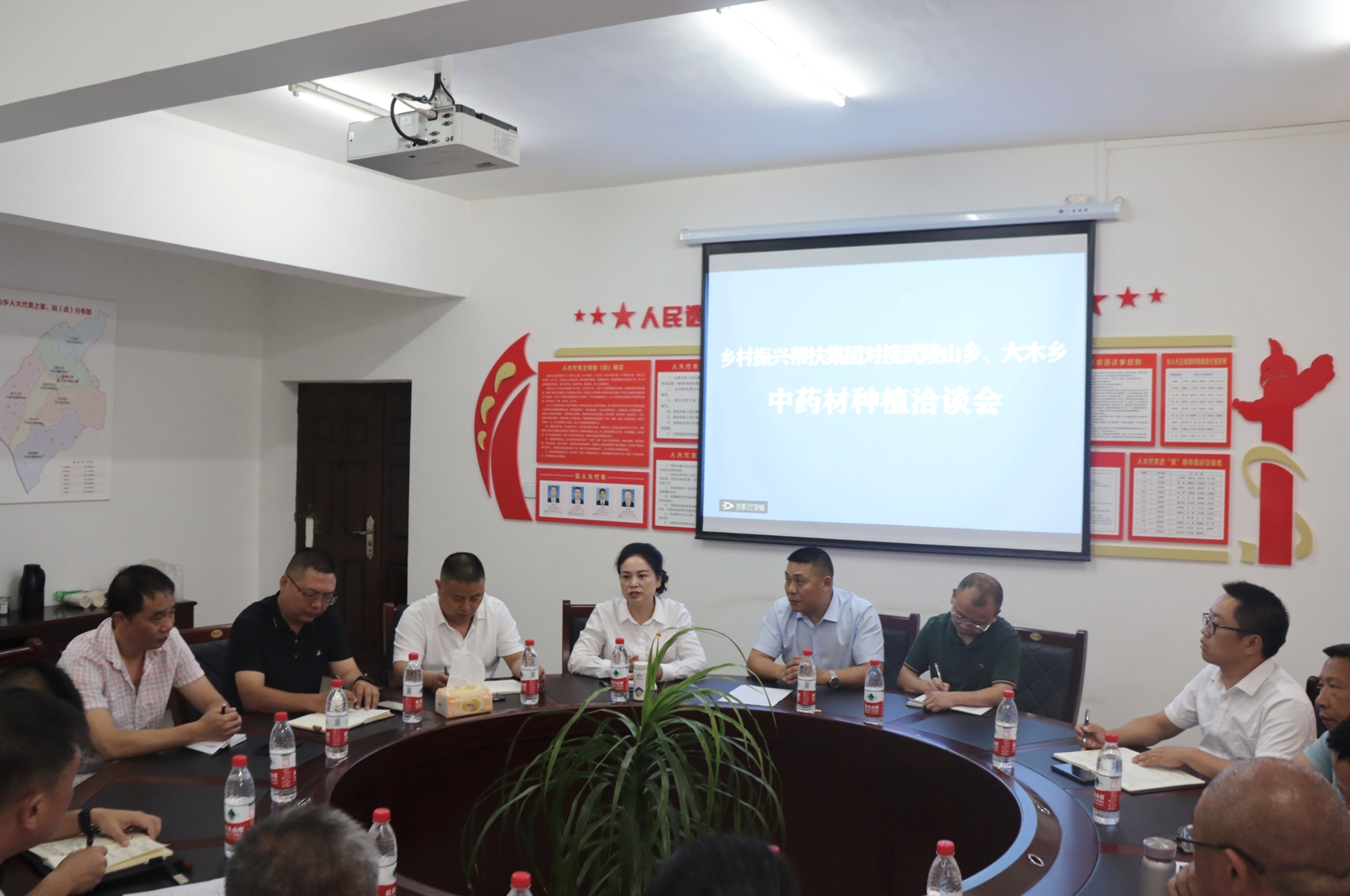 为助推乡村振兴,开辟对口帮扶新局面,9月14日,乡村振兴帮扶集团对接武陵山乡、大木乡中药材种植洽谈会在武陵山乡召开,区国资委党委委员彭玉怀主持会议,集团公司党委专职副书记、工会主席张春宏、大木乡组织委员董安仁、武陵山乡农服中心干部、武陵山乡角帮寨村、大木乡宣王村村干部、驻村工作队、种植大户代表等20余人参加。