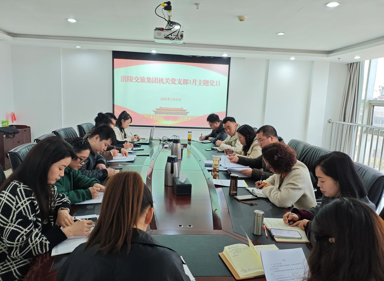 3月25日下午,涪陵交旅集团机关支部召开3月主题党日,开展集体学习,支部书记讲党课。会议由机关党支部书记吕建辉同志主持,党支部全体党员、入党积极分子、入党申请人参加。